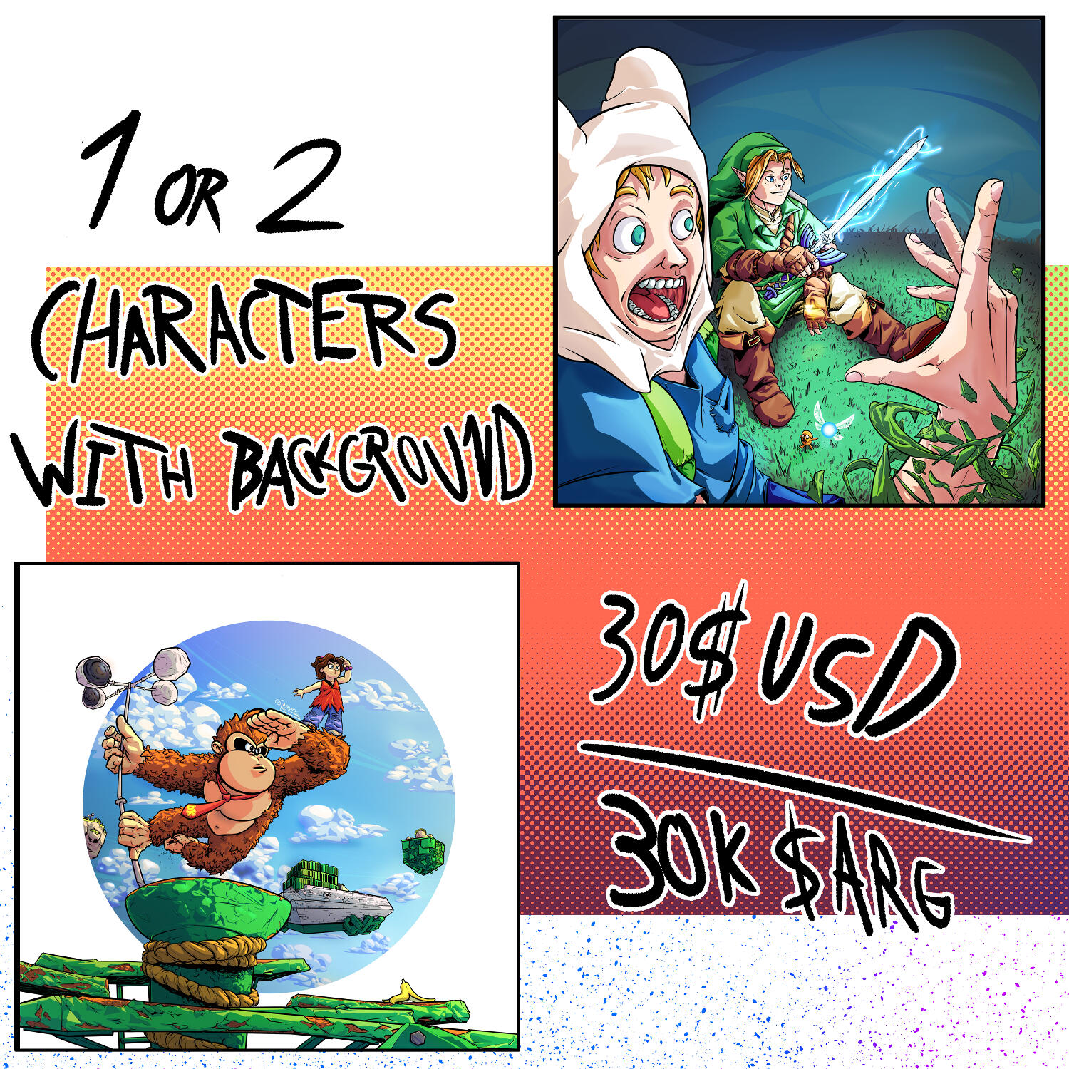 | 1-2 Characters With Background | 25 USD / 25K ARS | 30 USD/ 30K ARS |